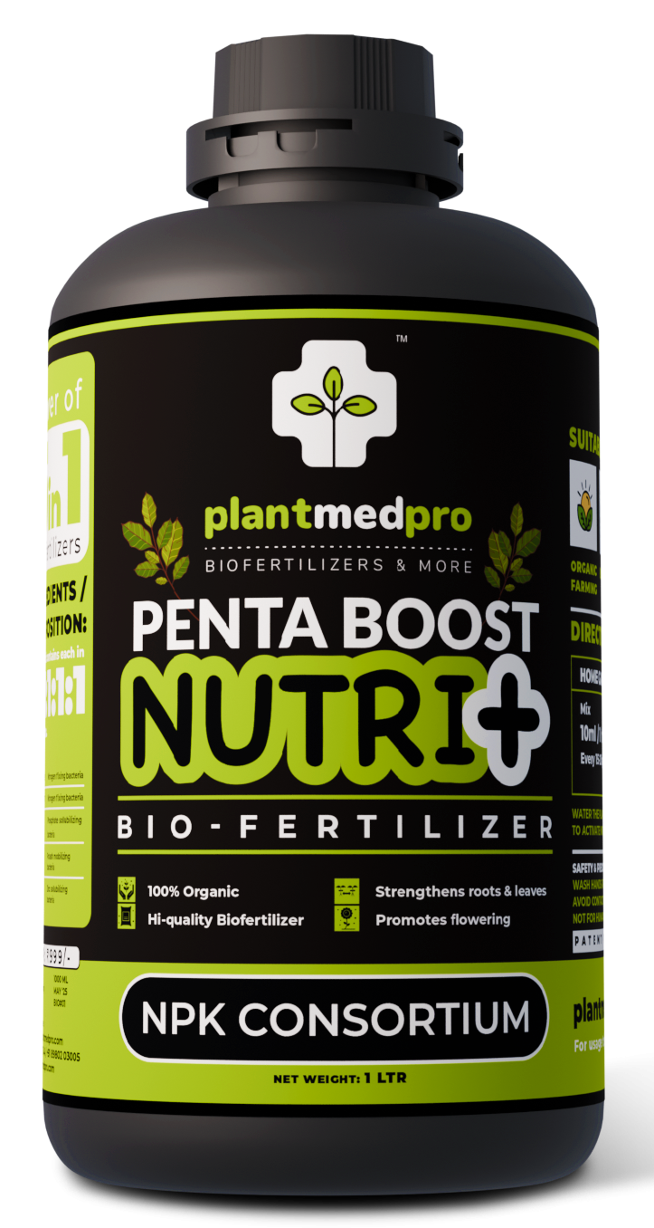 Plantmedpro™ Penta Boost Nutri+ 5-in-1 Biofertilizer - NPK & Zinc Mobilizing Microbes for Complete Plant Nutrition, Growth & Blooms | Organic fertilizer for home garden, pot plants (1 Ltr)